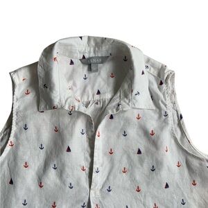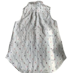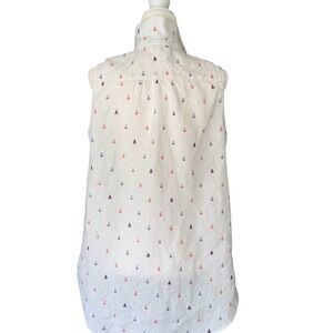 Light and breezy sleeveless white top featuring a nautical print with red and blue anchors and triangles.