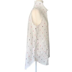 Kenar 100% Linen Sleeveless White Blouse with Nautical Print – Size Large