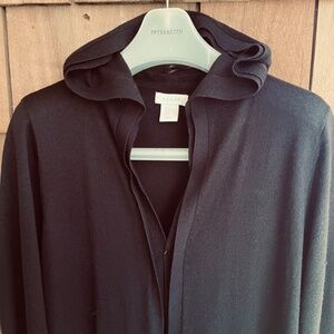 Kenar Black Long Hooded Open Cardigan, Merino Wool Blend, Size XL