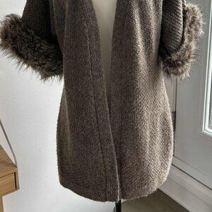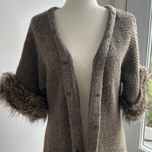 Kenar Heathered Taupe Alpaca-Blend Cardigan, Faux-Fur Cuffs & Button Band – US S
