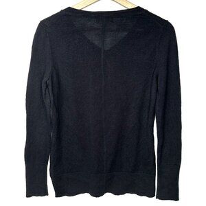 Kenar 100% Merino Wool Sweater Women Medium Black V Neck Long Sleeve Ribbed Hem