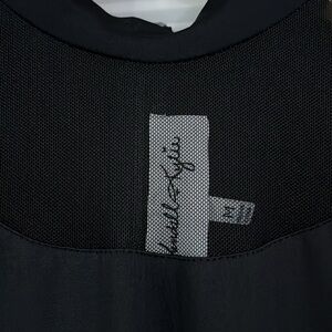 Chic black short sleeve bodysuit. Perfect for layering or wearing alone. High neck and mesh details. Has a zipper on the back.