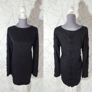 Kendall + Kylie Black Tencel Lace Up Bell Sleeve Mini Dress