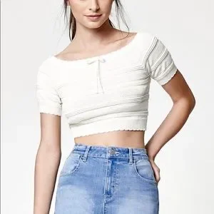 NWOT Kendall & Kylie peasant style cream crop top from Pacsun. Knit details.