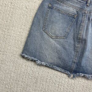 Kendall & Kylie Distressed Cut-Off Denim Mini Skirt Blue Raw Hem Casual Women’s