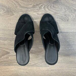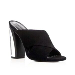 Kendall & Kylie Karmen Mules Heels Criss Cross Lucite Acrylic Clear Suede Black