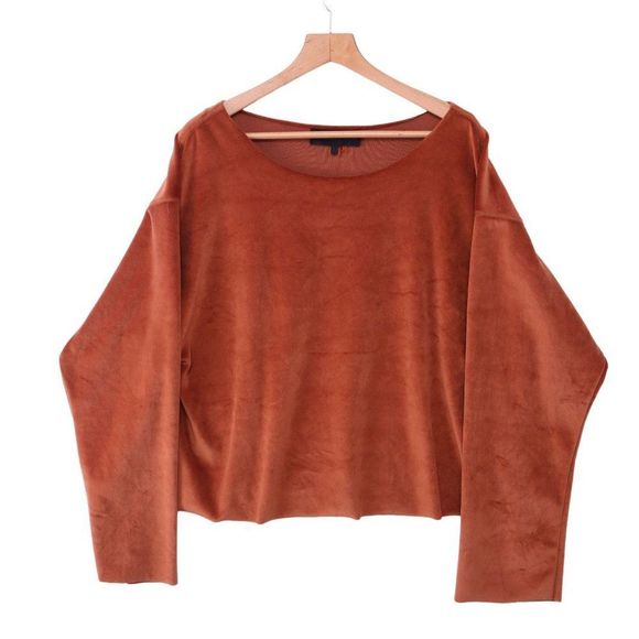 Kendall Kylie Off The Shoulder Velvet Sweater, Soft, Stretchy, Color: Rust