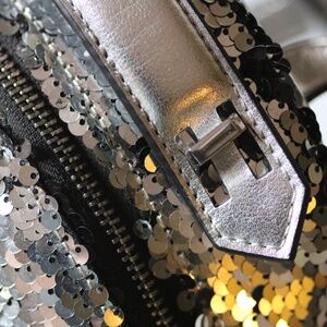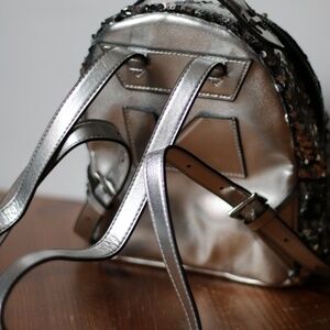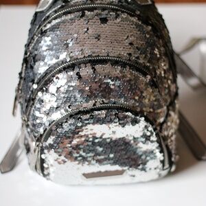 Pre-owned, gently used Kendall & Kylie mini backpack in excellent condition. All zippers work and the sequins flip from silver to black.