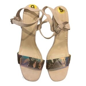 Stay on trend in this sexy block heel sandal from the Kendall & Kyle collection. Featuring a rainbow snake print over the toes and a buckle strap closure!