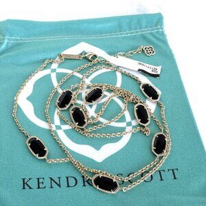 This beautiful Kendra Scott station necklace has a delicate gold-plated brass chain with 8 onyx stones. The necklace is brand new (though the tag is somewhat distressed) and comes with the Kendra Scott signature pouch. Here are the details: