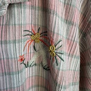 Keneth Too Women's 2X Crepe Button Up Collared Camp Shirt Short Sleeve Resort