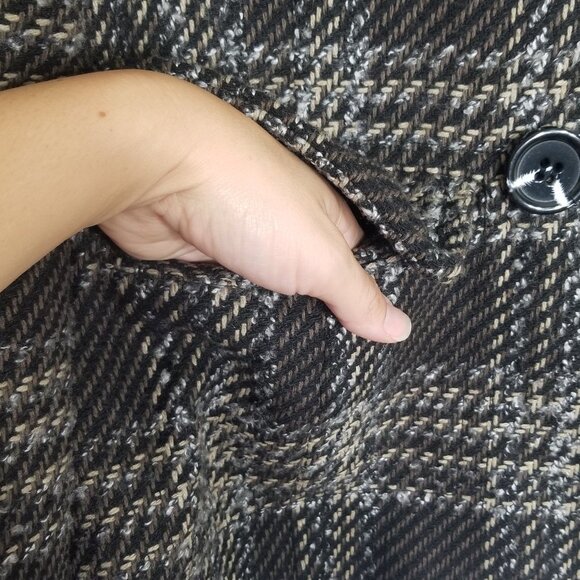 Kenneth Blake Double Breasted Pea Coat Jacket Plaid Wool Blend Pockets Large