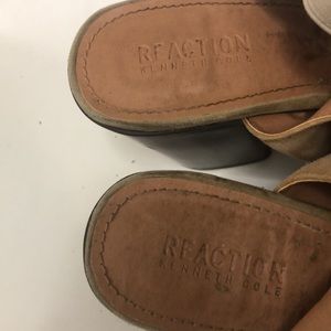 Reaction Kenneth Cole in Size 9.5 Open Toe High heel With Elastic Slingback in Tan Suede Upper style Friday Fly in Excellent Condition