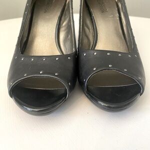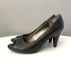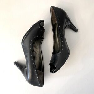 Kenneth Cole Black Studded Leather Peep-Toe Pumps