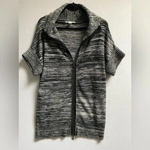 Kenneth Cole Black/ White Short sleeve cotton knit zipper cardigan Sz S