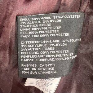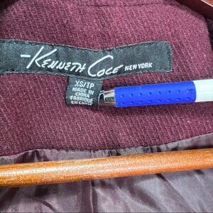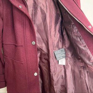 Kenneth Cole Burgundy Wool Blend Faux Fur Hooded Coat Size XS
