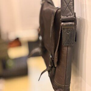 Kenneth Cole Colombian Leather Compu-Messenger bag. This bag is made of soft Colombian leather and features a flap-over design with metal closures. It includes an adjustable shoulder strap, inside pockets for phones, cards, and pens as well the main compartment has a padded pouch for a 15-inch laptop and space for an iPad or tablet.