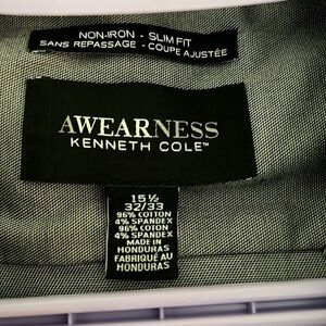 This Kenneth Cole dress shirt in a sophisticated gray hue is perfect for formal occasions. Crafted from a high-quality fabric, it offers a refined look with its classic collar and long sleeves. Ideal for business settings, this shirt combines elegance with comfort. Great condition pit to pit is 21 1/2 inches top to bottom is 29 1/4 inches and long sleeve length is 24 1/4 inches