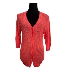 Kenneth Cole Linen Cotton Blend Cardigan Coral