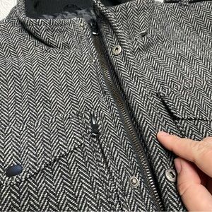 Kenneth Cole Men's Herringbone Field Jacket Coat Wool blend - Black and Gray XL