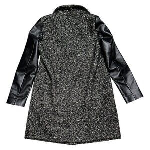Kenneth Cole New York Wool Blend Faux Leather Luxury Designer Winter Coat Medium