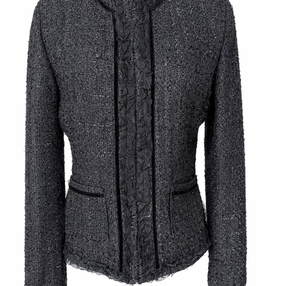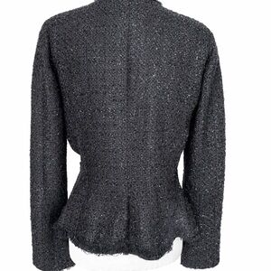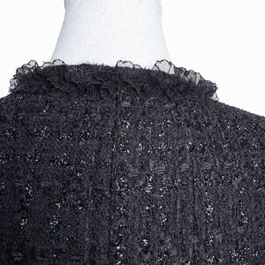 Kenneth Cole Reaction Black Metallic Tweed Jacket | Ruffle Trim