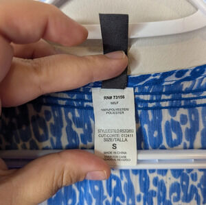 Stay stylish and sun-protected with this blue and white embroidered cover-up from Kenneth Cole Reaction (size Small).