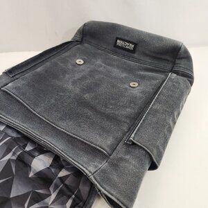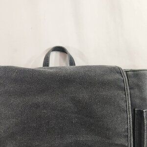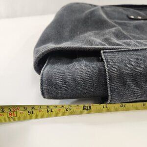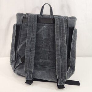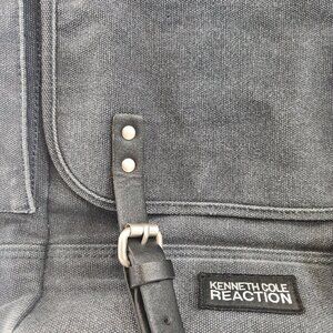 Kenneth Cole Reaction canvas backpack in greyish blue. Factory faded. Has 2 tiny pinholes in the flap because someone had two pins stuck to it; otherwise excellent condition. See photos for approximate measurements.