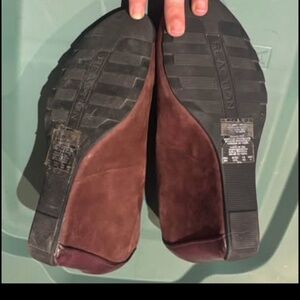 Beautiful burgundy suede with burgundy leather down the back of the shoe
