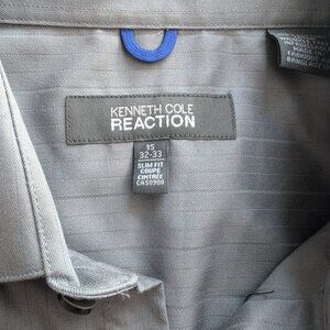 Kenneth Cole Reaction Dress Shirt Men’s 15 32/33 Gray Striped Long Sleeve 100%