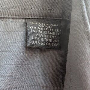 Classic and versatile Kenneth Cole Reaction men’s dress shirt in gray with subtle vertical stripes. Made from 100% wrinkle-free cotton, perfect for work, formal occasions, or smart casual wear.