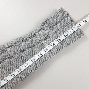 A classic pullover sweater in a neutral grey shade with a traditional cable knit pattern. Made from a cozy wool blend, the material has a slight raw texture so it’s best worn with a t-shirt underneath for maximum comfort. The sleeves are extra long giving you the option to roll up the cuffs for a personalized look. Perfect for late fall and winter. Great condition.