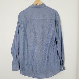 Kenneth Cole Reaction Men's Blue Striped Long Sleeve Button Up Cotton Shirt Large