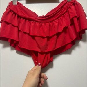 Stylish red swimwear with elegant ruffles. Perfect for summer fun.