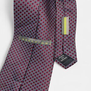 Kenneth Cole Reaction Silk Tie Geometric Red Silver Formal Business Dress