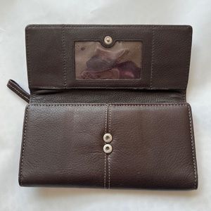 Kenneth Cole Reaction Wallet Tri Fold Brown 14 Card Slots DL Bills Zip Coin Comp