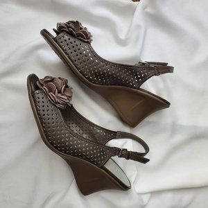 Never worn grey/taupe sandals. They are so cute with the flower detail! Wedge heel with adjustable straps makes them super comfy to wear all day long!