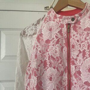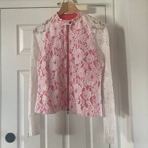 Kenneth Cole Reaction White Lace Blazer Zip Jacket Pink Lining Size Small