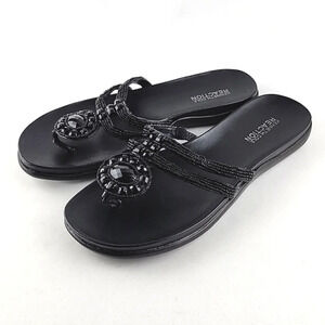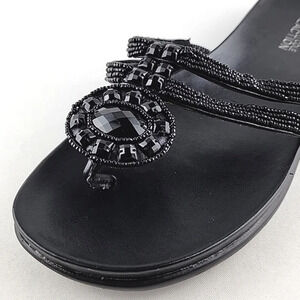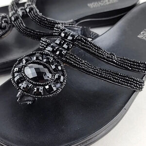 Kenneth Cole Reaction Women's Black Glam Slam Flat Sandals Beaded Thong Size 8