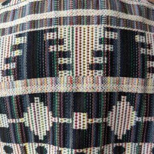 white, navy blue and multicolored thread that makes it look a bit holographic