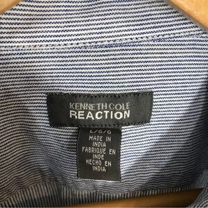 Kenneth Cole Reactions Cotton Blue and White Stripe Button Down Short Sleeved L