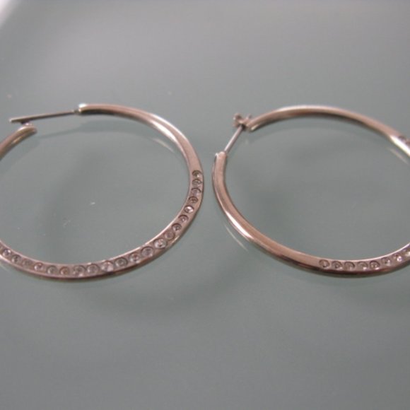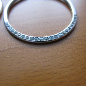 Dress up your look with these cute hoops. Little sparkle peeks out from the edges. Silver with rhinstones.
