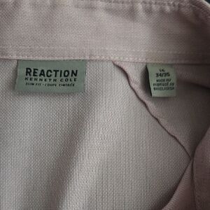 Elegant soft pink shirt by Kenneth Cole. Perfect for both formal and casual occasions. Features a classic collar and buttoned cuffs.