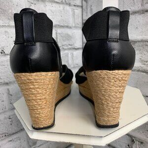 Kenneth Cole Strappy Black Elastic Espadrille Wedge Sandals