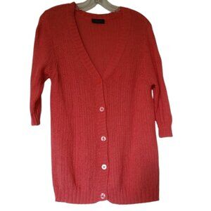 Kenneth Cole Select Linen Blend 3/4 Sleeve Button Front Coral Cardigan