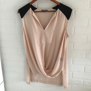 Kenneth Cole Women’s Tank top Nude blush Black Colorblock Draped Size M