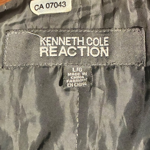 The jacket's brand, Kenneth Cole, is a well-known name in the fashion industry, ensuring quality and style. This winter jacket also has pockets for added convenience. Has front insert of a knit type material and quilted lining. Has a snap at the top when it’s really cold to warm the neck. Collar can lay flat or stand up.