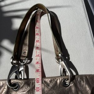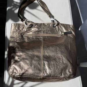 Kenneth Cole XL tote bag in burnished gold leather, w. brushed nickel hardware