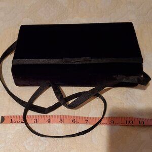 Kenneth Cole black velvet clutch purse with front satin bow detail, long strap