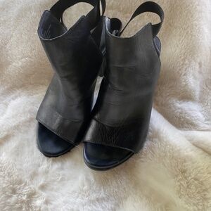 Kenneth Cole Reaction leather open toe open heeled bootie 4” heel